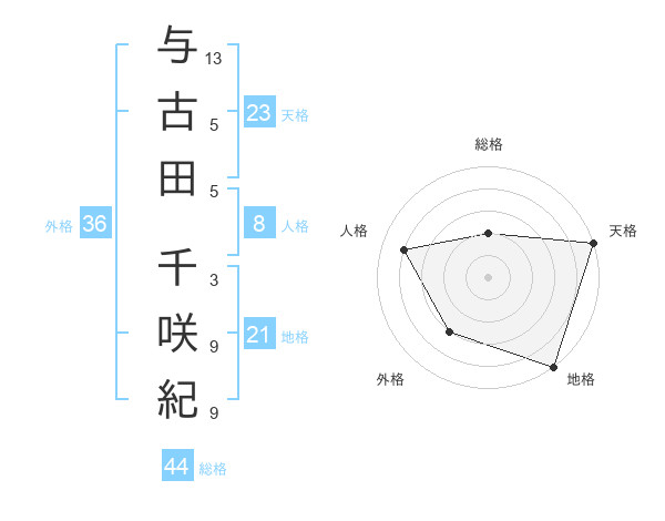 与古田 千咲紀さんを姓名の画数から五運を鑑定