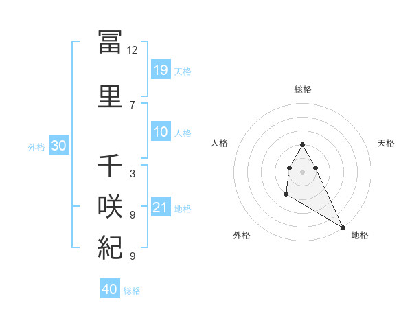 冨里 千咲紀さんを姓名の画数から五運を鑑定