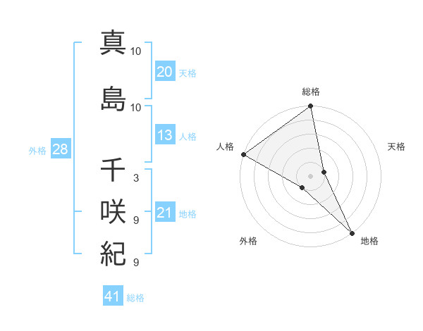 真島 千咲紀さんを姓名の画数から五運を鑑定