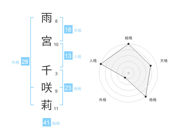 雨宮 千咲莉さんの総格は41画の5点