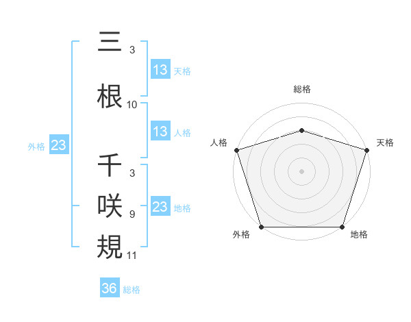 三根 千咲規さんの天格は13画の5点!
