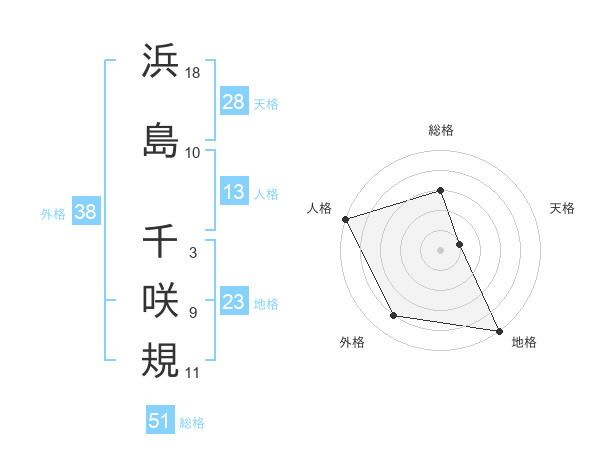 浜島 千咲規さんを姓名の画数から五運を鑑定