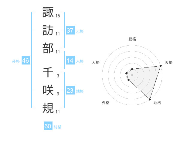 諏訪部 千咲規さんの総格は60画の1点!