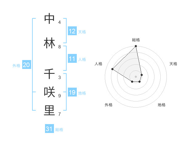 中林 千咲里さんの総格は31画の5点!