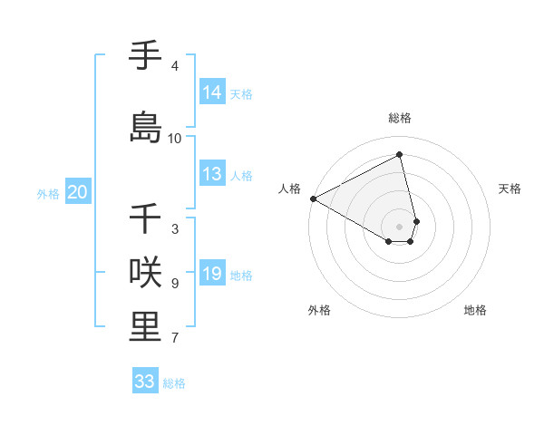 手島 千咲里さんを姓名の画数から五運を鑑定