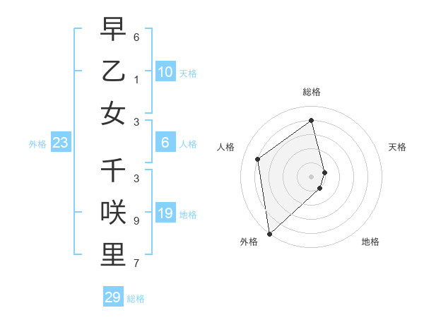 早乙女 千咲里さんを姓名の画数から五運を鑑定