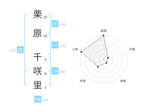 栗原 千咲里さんを姓名の画数から五運を鑑定