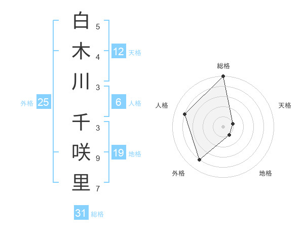 白木川 千咲里さんの総格は31画の5点!