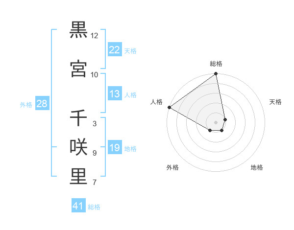 黒宮 千咲里さんを姓名の画数から五運を鑑定