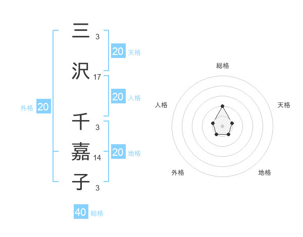 三沢 千嘉子さんを姓名の画数から五運を鑑定