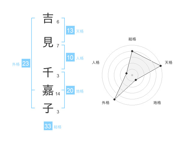 吉見 千嘉子さんを姓名の画数から五運を鑑定