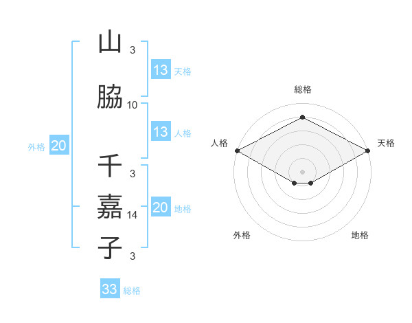 山脇 千嘉子さんの天格は13画の5点!
