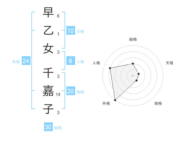 早乙女 千嘉子さんを姓名の画数から五運を鑑定