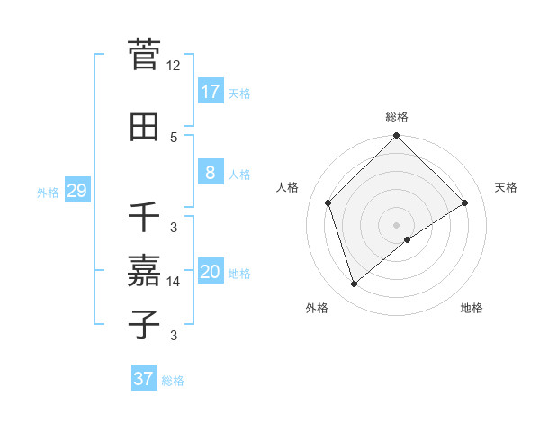 菅田 千嘉子さんの総格は37画の5点!