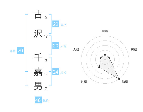 古沢 千嘉男さんを姓名の画数から五運を鑑定