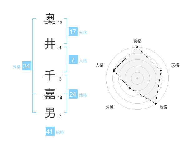 奥井 千嘉男さんを姓名の画数から五運を鑑定