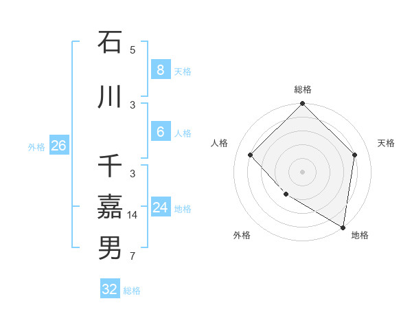 石川 千嘉男さんの総格は32画の5点!