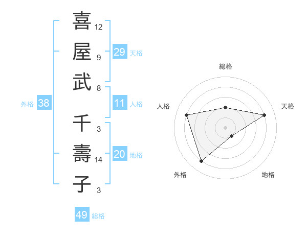 喜屋武 千壽子さんの総格は49画の2点!