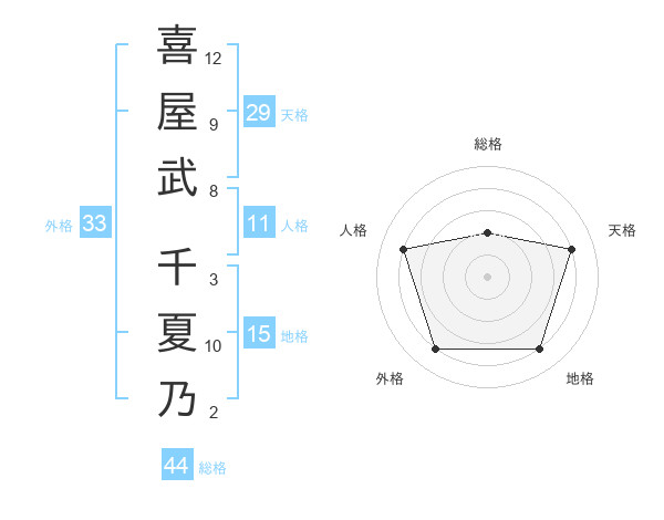 喜屋武 千夏乃さんを姓名の画数から五運を鑑定