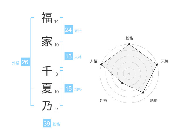 福家 千夏乃さんを姓名の画数から五運を鑑定