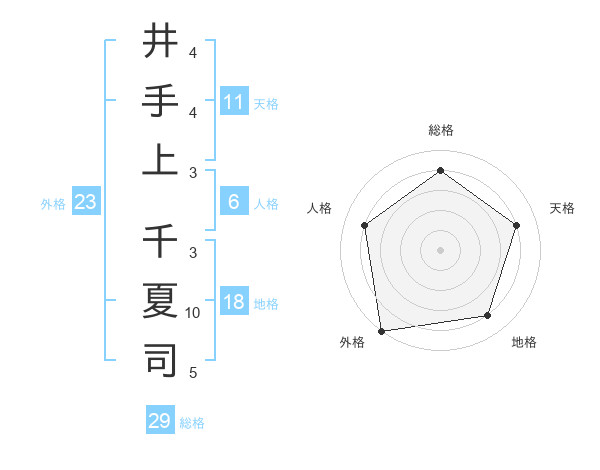 井手上 千夏司さんを姓名の画数から五運を鑑定