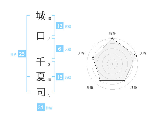 城口 千夏司さんの総格は31画の5点!