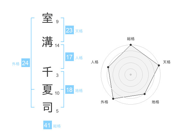 室溝 千夏司さんの総格は41画の5点!