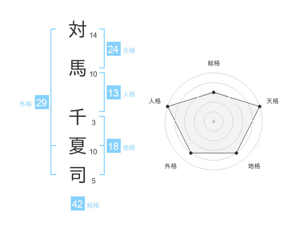 対馬 千夏司さんを姓名の画数から五運を鑑定