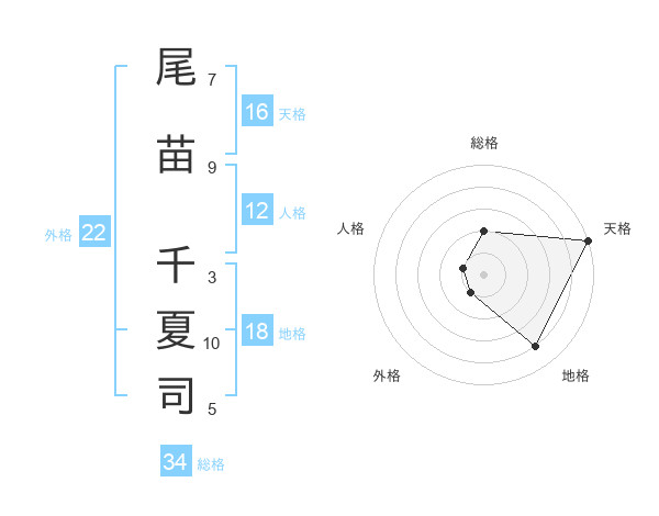 尾苗 千夏司さんを姓名の画数から五運を鑑定