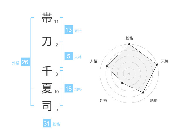 帯刀 千夏司さんを姓名の画数から五運を鑑定