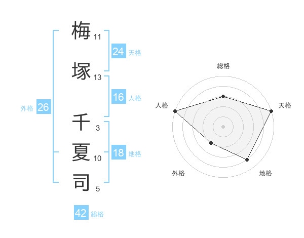 梅塚 千夏司さんを姓名の画数から五運を鑑定