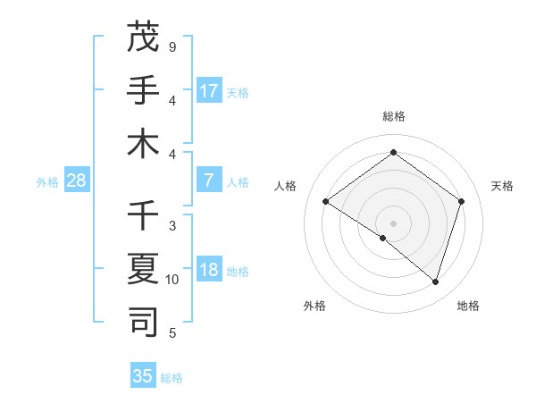 茂手木 千夏司さんの総格は35画の4点!