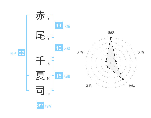 赤尾 千夏司さんの総格は32画の5点!