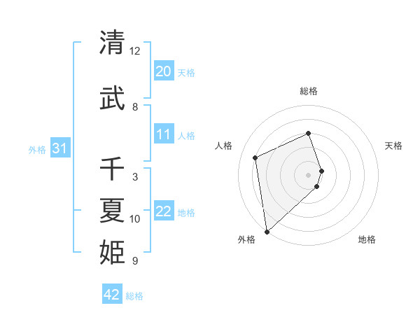 清武 千夏姫さんを姓名の画数から五運を鑑定