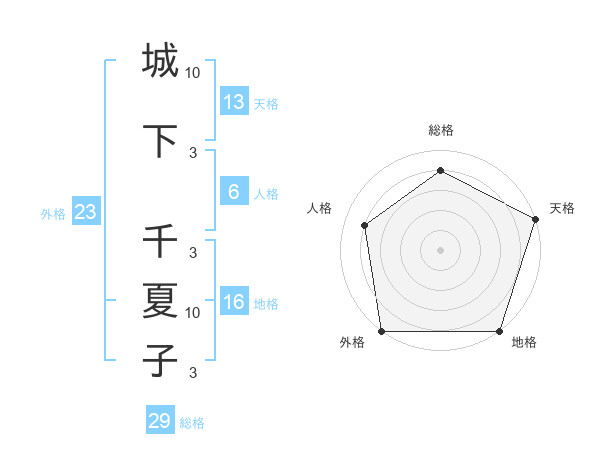 城下 千夏子さんを姓名の画数から五運を鑑定