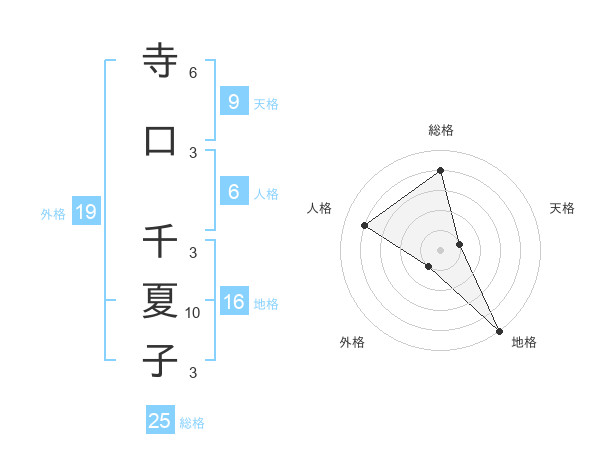 寺口 千夏子さんの天格は9画の1点!
