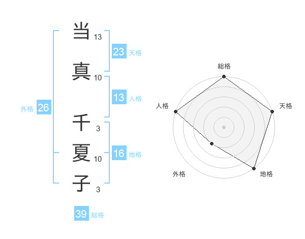 当真 千夏子さんの天格は23画の5点!