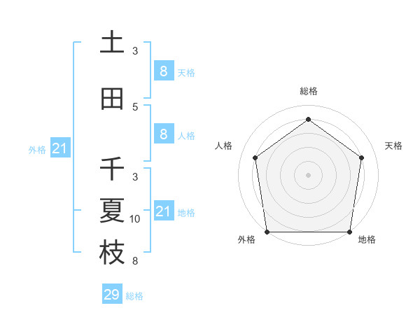 土田 千夏枝さんを姓名の画数から五運を鑑定
