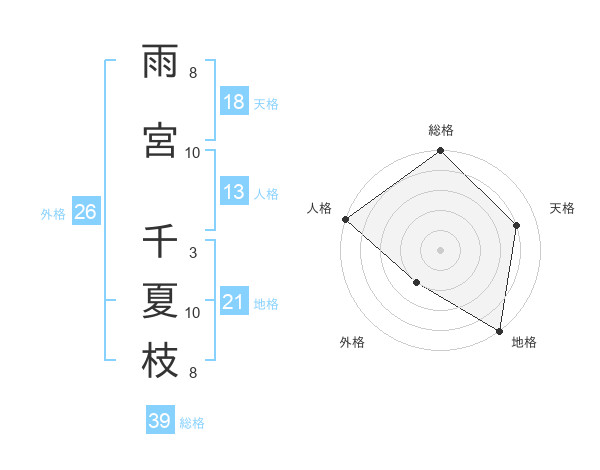 雨宮 千夏枝さんの総格は39画の5点