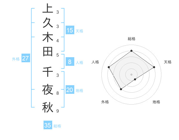 上久木田 千夜秋さんの総格は35画の4点