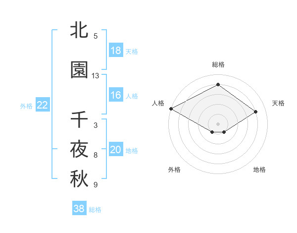 北園 千夜秋さんの総格は38画の4点!