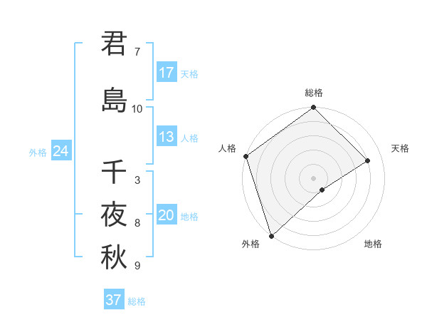 君島 千夜秋さんを姓名の画数から五運を鑑定