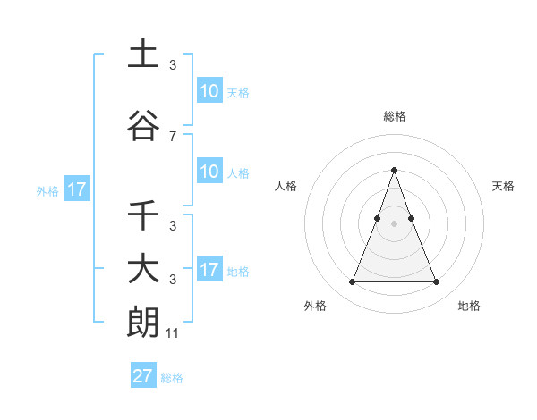 土谷 千大朗さんを姓名の画数から五運を鑑定