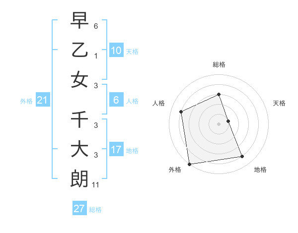 早乙女 千大朗さんを姓名の画数から五運を鑑定
