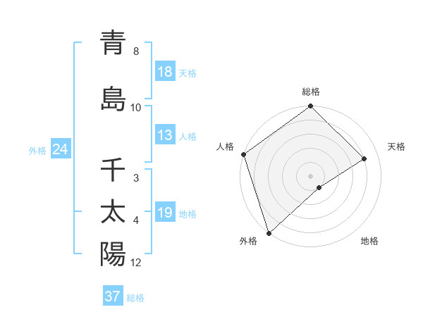 青島 千太陽さんを姓名の画数から五運を鑑定