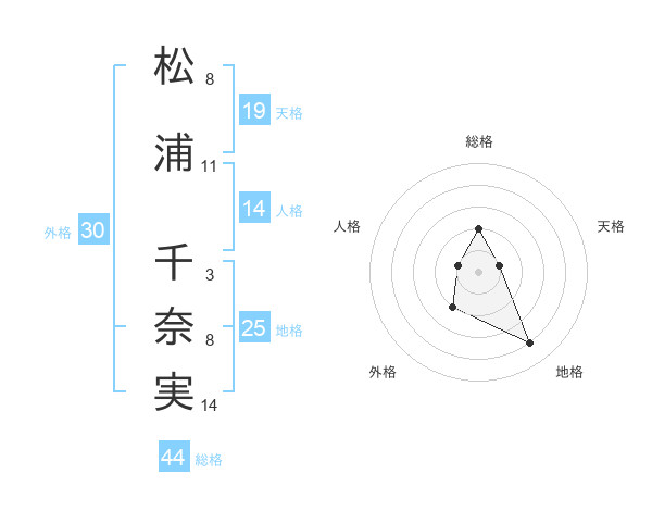 松浦 千奈実さんを姓名の画数から五運を鑑定