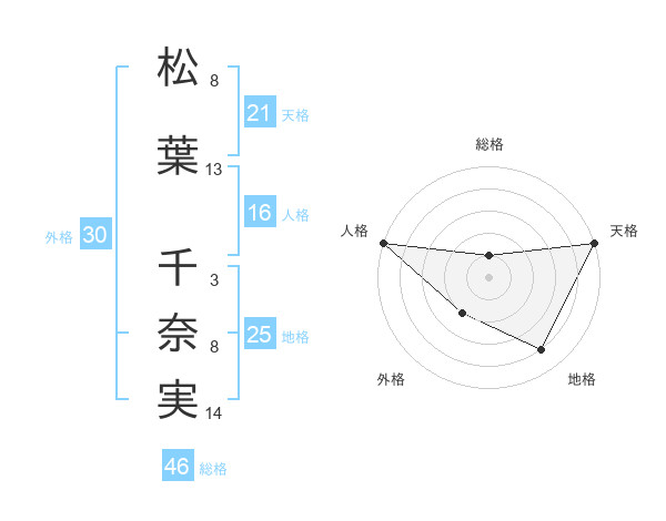 松葉 千奈実さんを姓名の画数から五運を鑑定