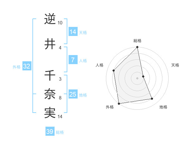 逆井 千奈実さんを姓名の画数から五運を鑑定
