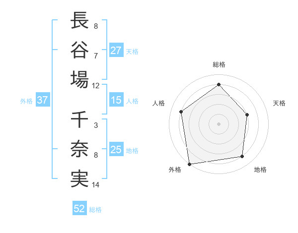 長谷場 千奈実さんの総格は52画の4点!