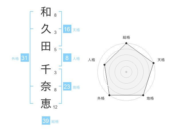和久田 千奈恵さんを姓名の画数から五運を鑑定